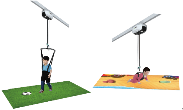 智能天軌減重訓練是建立在大腦功能重組和神經可塑性基礎上新的康復訓練方法。減重步行訓練的早期介入在于使尚不具備步行條件的患兒較早地進行步行訓練,刺激了患兒的脊髓步行中樞模式發生器(CPG)和大腦的步行中樞,激活受累大腦半球感覺和運動區的活動,促進患兒步行能力的提升,步幅加大,步行耐力增強,平衡功能改善。